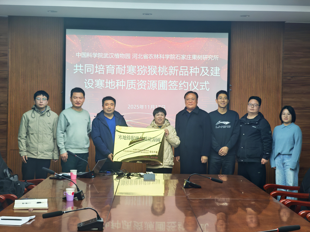在交流环节,生物技术(猕猴桃)研究室主任牛帅科重点介绍了研究室在猕猴桃资源收集、园区规划与团队建设等方面的进展。双方围绕河北省猕猴桃产业特点与发展趋势展开深入交流,并就品种选育、区域试验等研究方向达成合作共识。最后,双方共同签署了寒地猕猴桃种质资源圃建设合作协议。