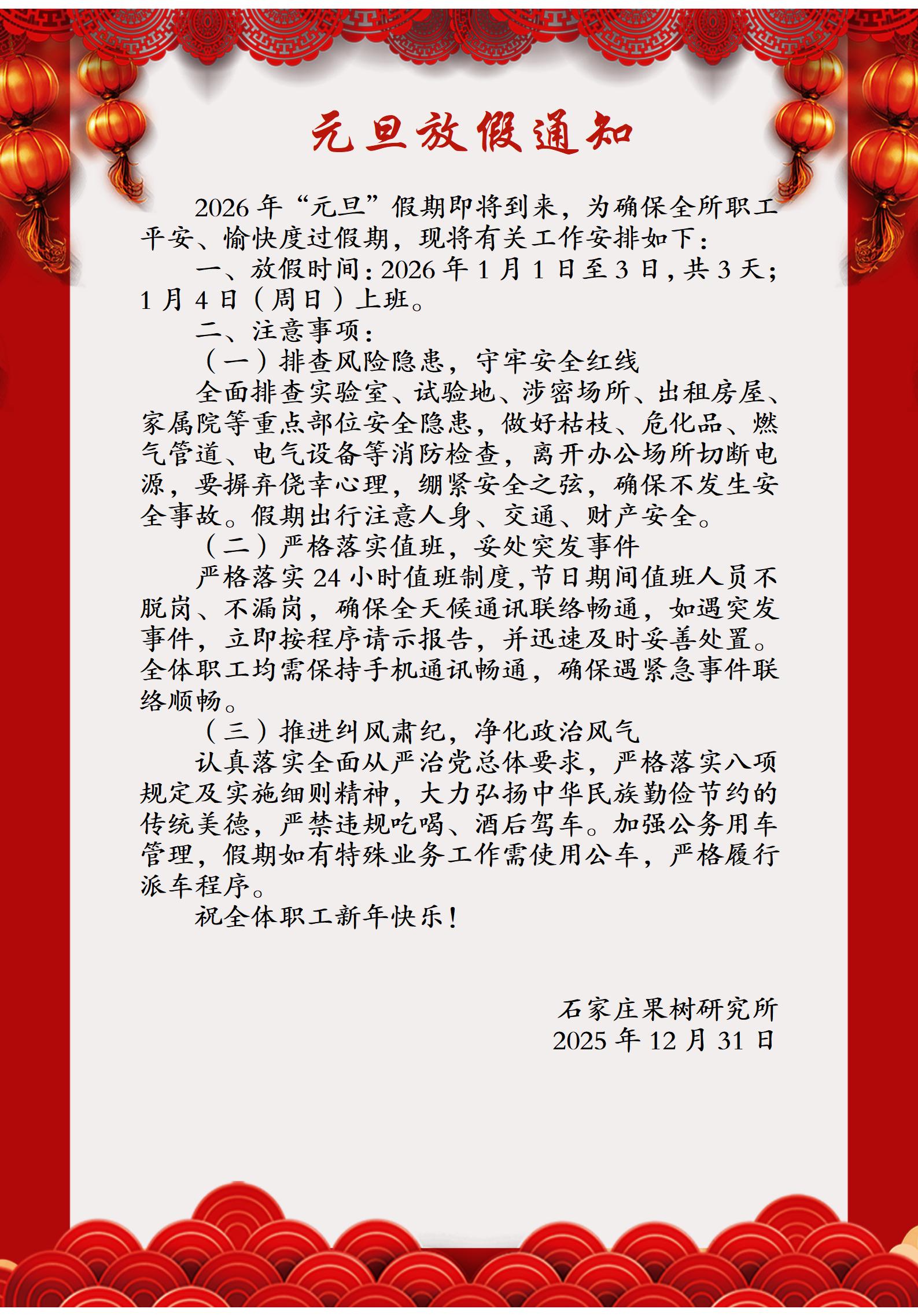 2026年元旦放假通知
