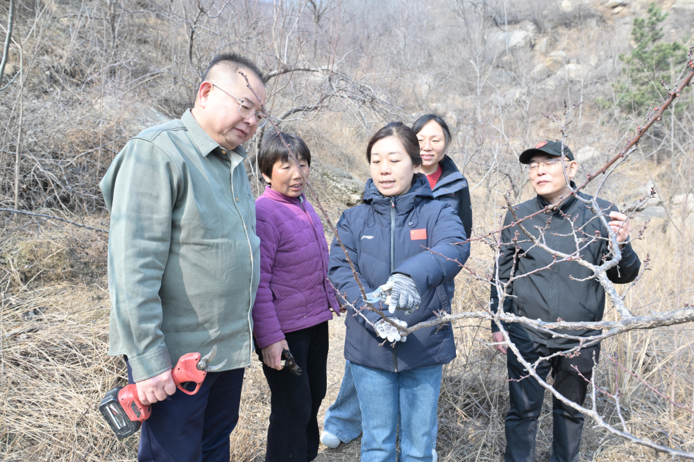 调研组一行深入企业山坡杏园,实地查看了从我所引进的新品种在山坡地的成活及生长表现,详细了解了品种适应性、栽培管理及果品加工等情况。座谈会上,虎吟潭公司负责人介绍了企业发展现状以及绿色食品成功申报,并提出当前面临的“卡脖子”技术难题:干旱瘠薄山地条件下如何提升果实品质与产量,满足绿色食品标准的病虫害综合防控技术需求,以及果品深加工与副产物综合利用等产业链延伸问题。期间,李杏团队专家针对园区杏树开展了冬季修剪和大树高接换优技术培训,现场示范操作要领,指导企业技术人员掌握关键管理技术。