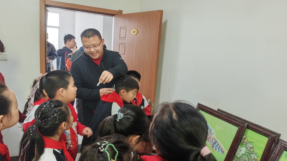 活动现场亮点纷呈、秩序井然。科研人员化身“科普向导”,带领大家走进标本室,植保专家深入浅出讲解昆虫标本采集、固定与制作流程,耐心解答同学们的疑问,让大家在细致观察中,揭开昆虫世界的神秘面纱;移步杏示范园,师生认真聆听杏花结构讲解,认识雄蕊、雌蕊功能,直观了解授粉过程与果实发育奥秘;走进草莓温室,近距离观察草莓果实形态变化,学习绿色防控技术与生态种植理念,感受现代农业科技的魅力。