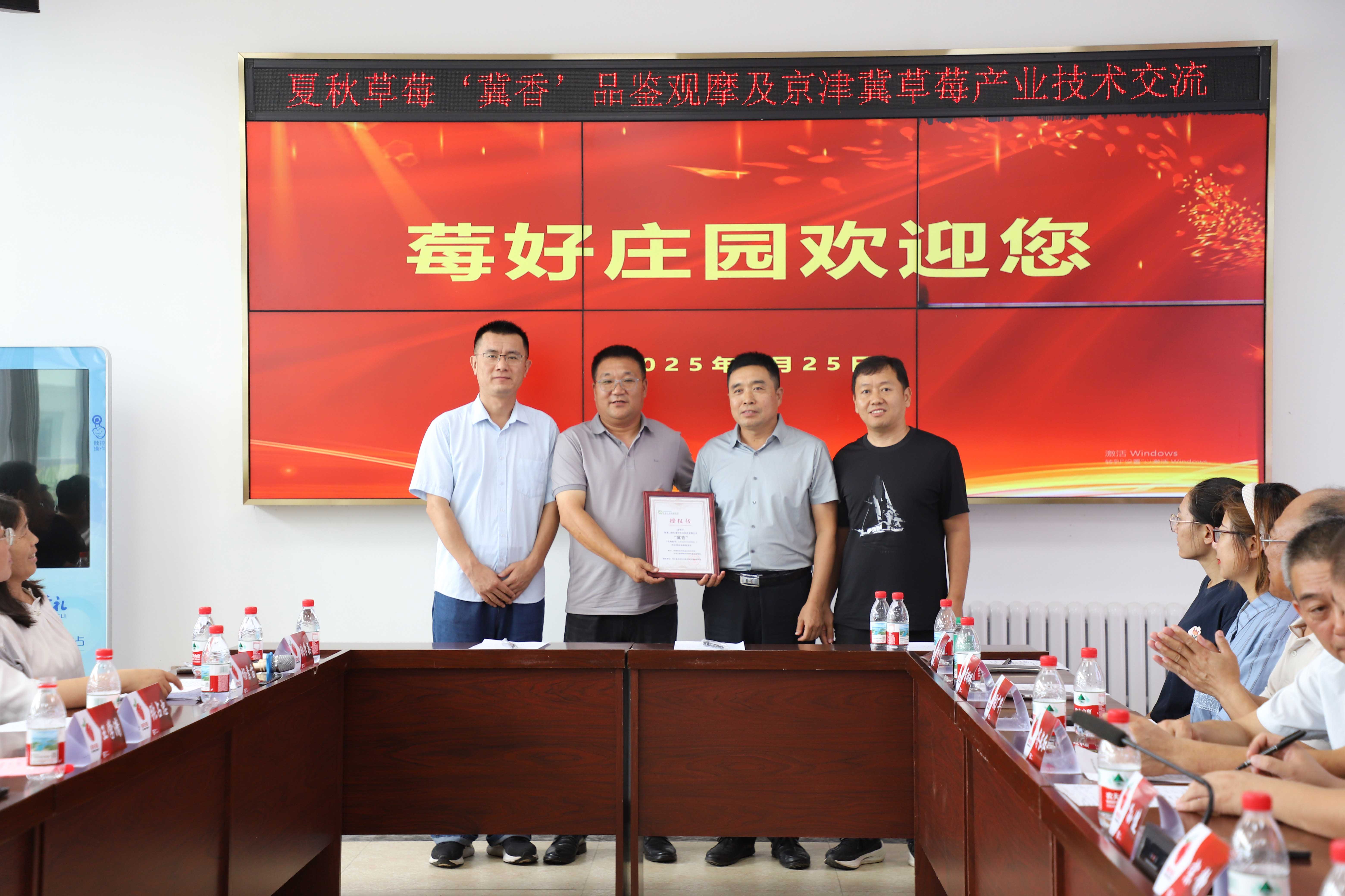自2022年起,草莓创新团队与张家口崇礼莓好生态科技有限公司及河北涞源高地农业科技有限公司进行四季草莓新品种‘冀香’及绿色生产技术应用与示范,取得了显著成效。2022年至2025年张家口崇礼区老芽茬村‘莓好庄园’及保定涞源县白石山村‘高地农业’试验示范了优质、丰产、抗病、耐贮运四季草莓新品种‘冀香’,两个基地均采用了稻壳及秸秆改良土壤,充分利用有机肥,疏花疏果,蜜蜂辅助授粉,黄板诱杀蚜虫、蓝板诱杀蓟马,异色瓢虫防控蚜虫,捕食螨防控红蜘蛛等绿色生产技术手段,保证了生产出的草莓果品绿色、优质、安全。两个基地的公司分别与河北省农林科学院石家庄果树研究所签订了‘冀香’品种经营权转让协议。